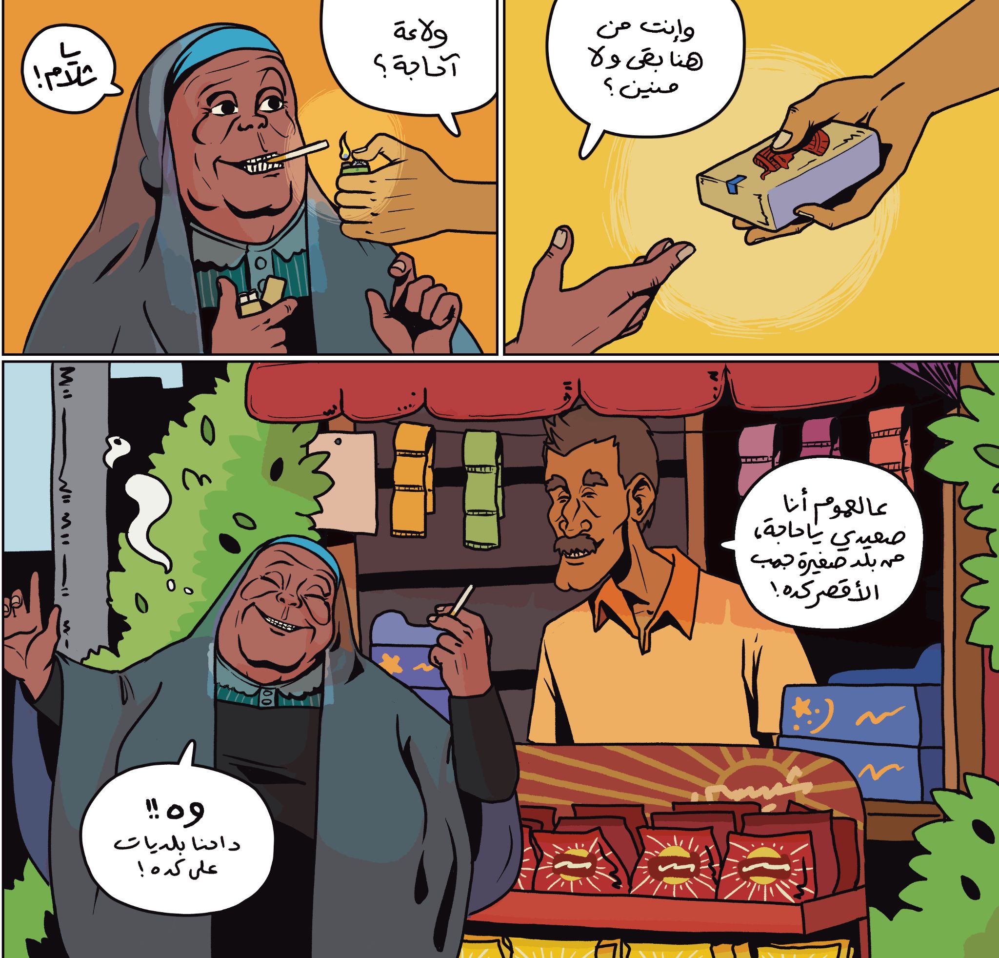 Inherently otherworldly, comics have the flexibility to blend the fantastical and the mundane, encapsulated, for example, in the image of a donkey bumming a cigarette on a Cairo street corner in Egyptian artist Deena Mohamed’s Shubeik Lubeik (Your Wish is My Command) trilogy.