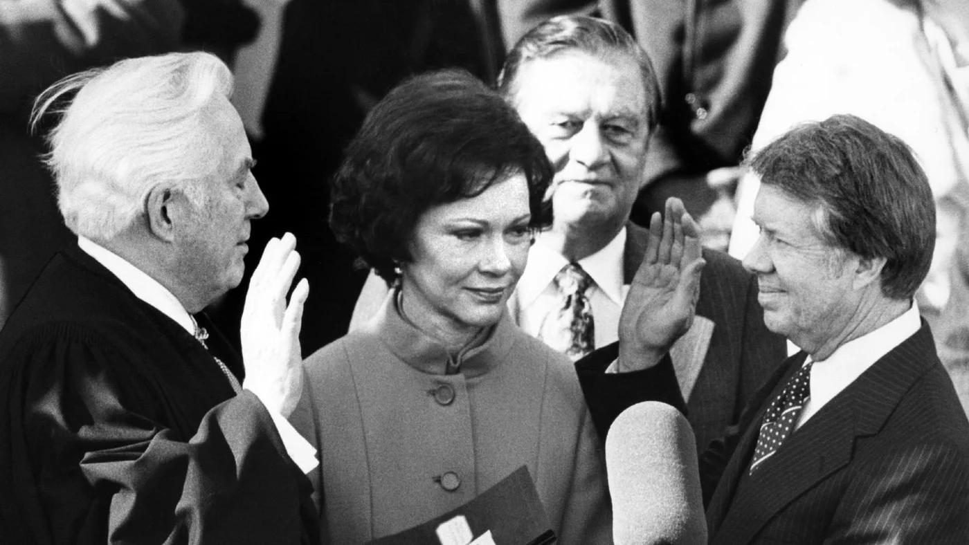 In 1953, after his father died of cancer, Carter left the Navy to return to Plains and take over the family’s peanut farm, warehouse and store. In 1962, he was elected to Georgia’s state Senate, where he served two terms. He failed in his first bid to become governor in 1966 before finally being elected in 1970, making waves with an inauguration speech in which he called time on racial discrimination in his home state.