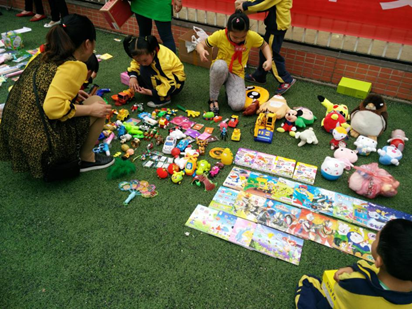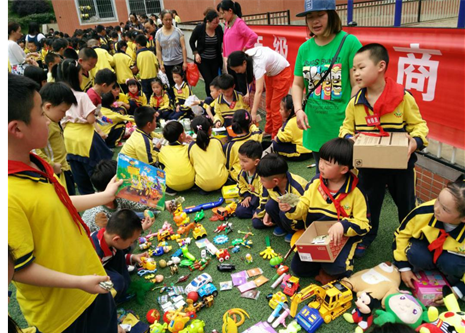 5月4日下午,半岛在线体育网小操场人头攒动,热闹非凡,“快来买东西啦!有芭比娃娃、有拼图……”这是一年级全体师生正在举行一场别开生面的小小商品交易会。只见学生自己摆摊,同学当顾客,活动以班级为单位设立售卖点,全年级同时开展,每班八名售货员。为方便零钱兑换,还单独设立了零钱兑换点。各班的摊点前均吸引了许多学生参与。学生摆摊卖的商品,一部分是学生捐赠的旧物品,一部分是由老师采购的学习用品。按照活动要求,每个学生都可以带20元左右的零钱,参与交易会。一年级近700名学生,不到半小时的时间,将活动现场的近千件商品抢购一空。