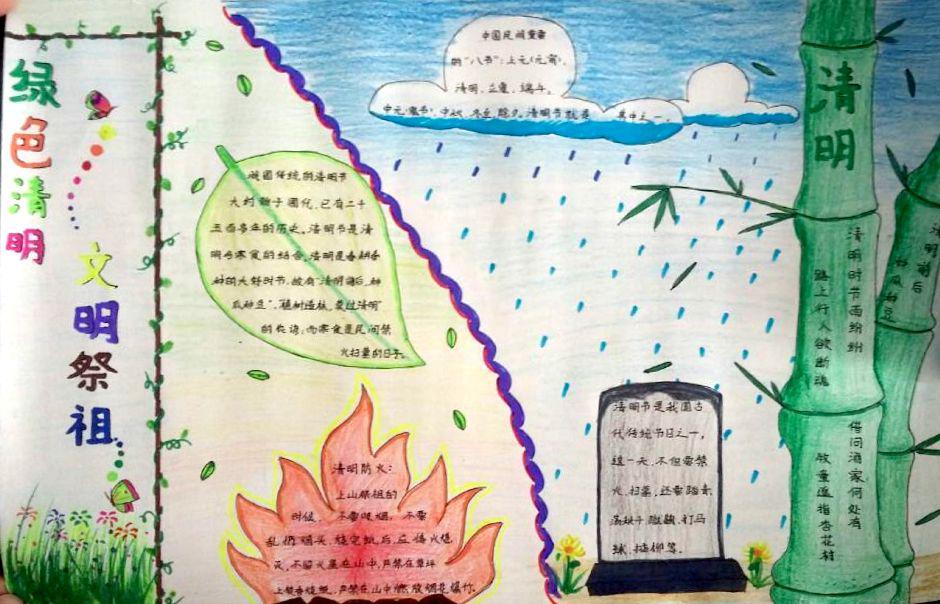 清明节祭扫完后,很多学生以手抄报和文章的形式表达了他们清明节的绿色文明祭扫活动。(苏海波)