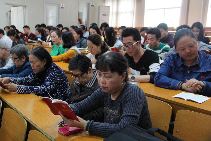 第一,学校党建办公示了半岛在线体育网党员3月份党费收缴情况;全体党员现场缴纳了4月份党费。第二,总支副书记、校长习海平同志领诵了《党章》第二章。第三,总支纪检委员洪耀明同志引领学习《求是》(2016年第四期)上的重要理论专篇《认真贯彻执行〈准则〉和〈条例〉 推进全面从严治党、依规治党》,了解最新的党规党情。第四,杜小清同志传达市教育系统“主题党日+”活动暨2016年党建工作会的主要内容,重点传达了市直机关工委副书记龙华云同志和市教育局党组书记、局长李旭东同志关于如何抓好党建工作的讲话精神。第五,杜小清同志对今天的“主题党日+”活动做了总结,肯定了全体党员良好的纪律和认真学习的态度,要求全体党员同志把这样严谨认真的态度放到日常教育教学工作中去。最后,此次“主题党日+”活动在肯定老党员同志们积极参与的掌声中圆满落幕。